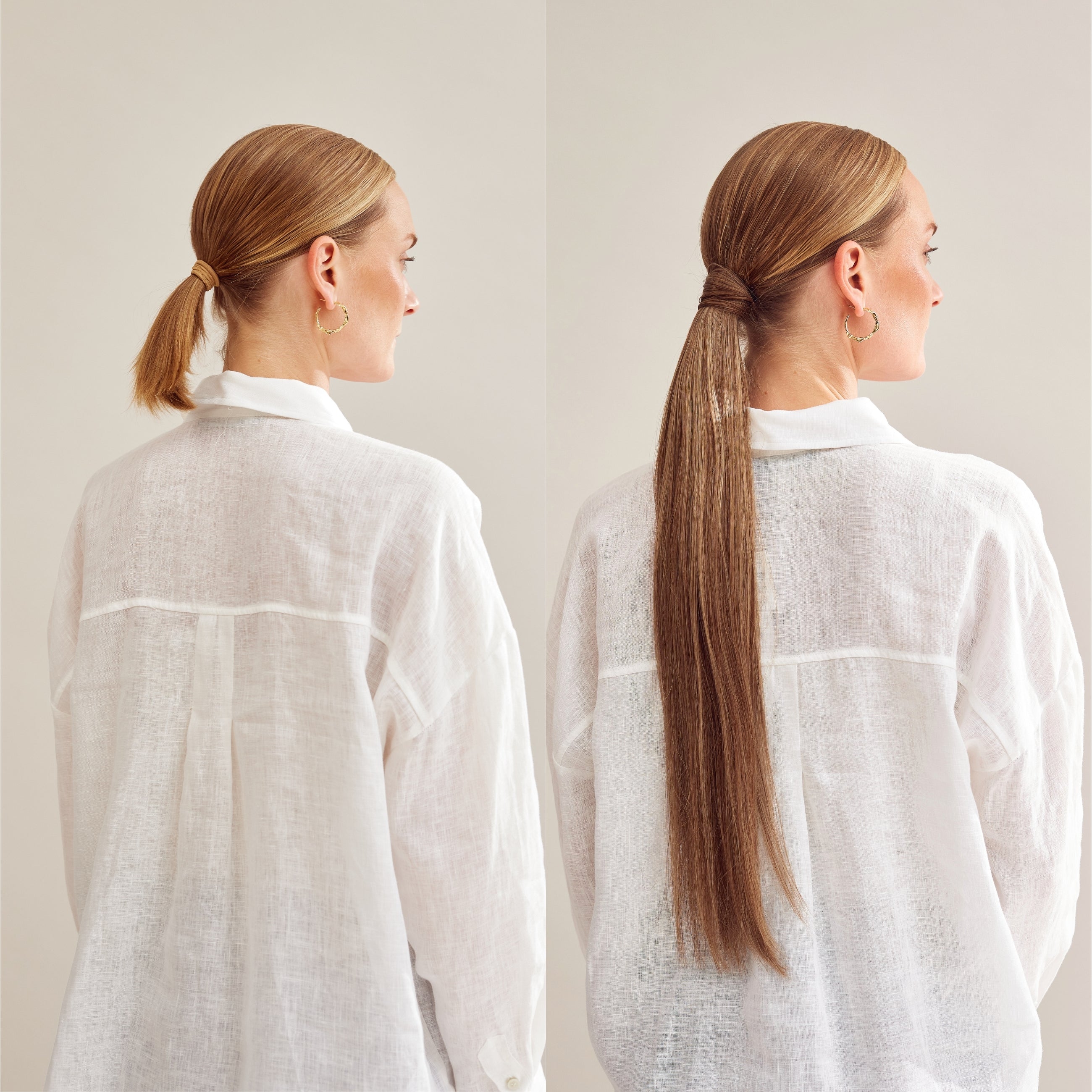 Med ponytail extensions af ægte hår bliver din hestehale alt andet end kedelig. Du kan sætte dit hår præcis, som du har lyst til. Uanset om du er mest til et messy, krøllet look eller foretrækker det helt sleek og skarpt.