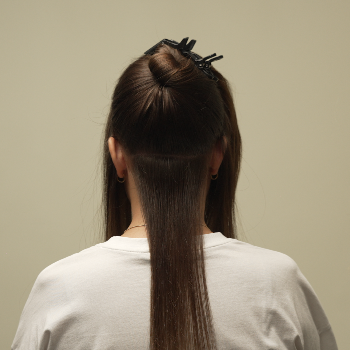 Sæt dit eget hår op med en hårklemme, så du nemt kan komme til banen med micro-ringe.