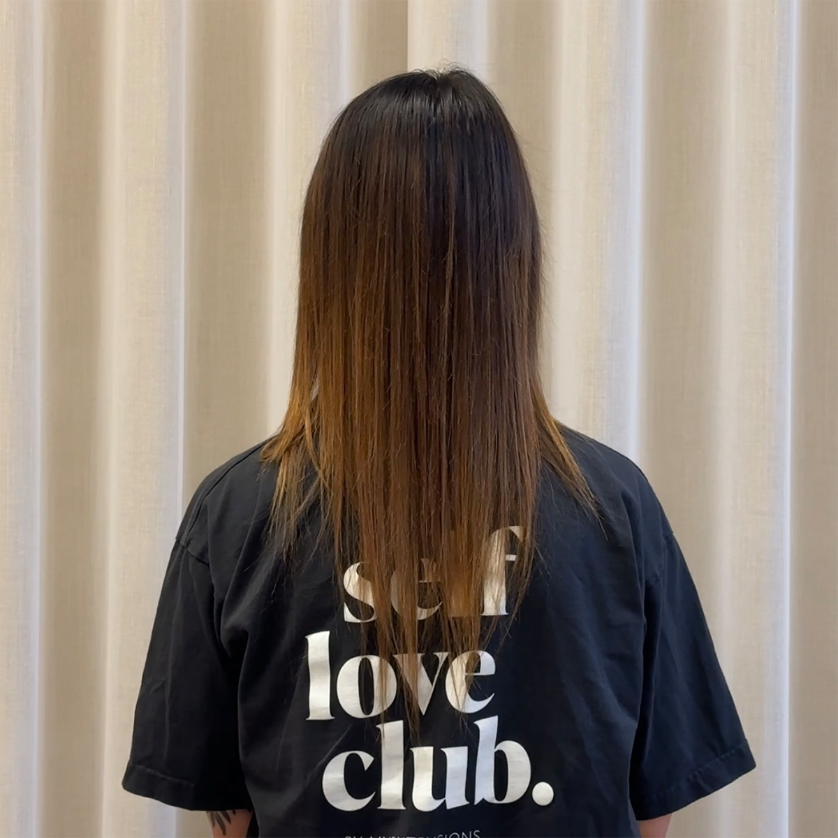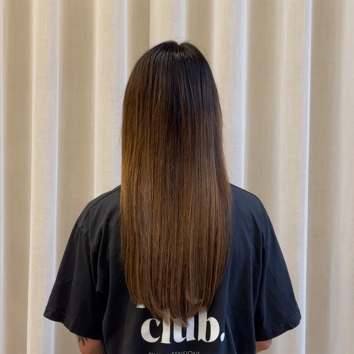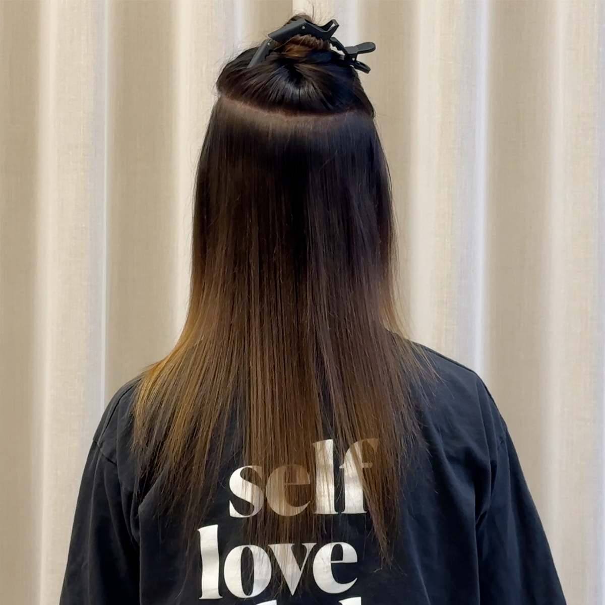 Når du har påsat hele din invisible tape weft, er du færdig. Vi anbefaler altid en lille tilklipning af dine extensions i spidserne, men du bestemmer selvfølgelig selv.