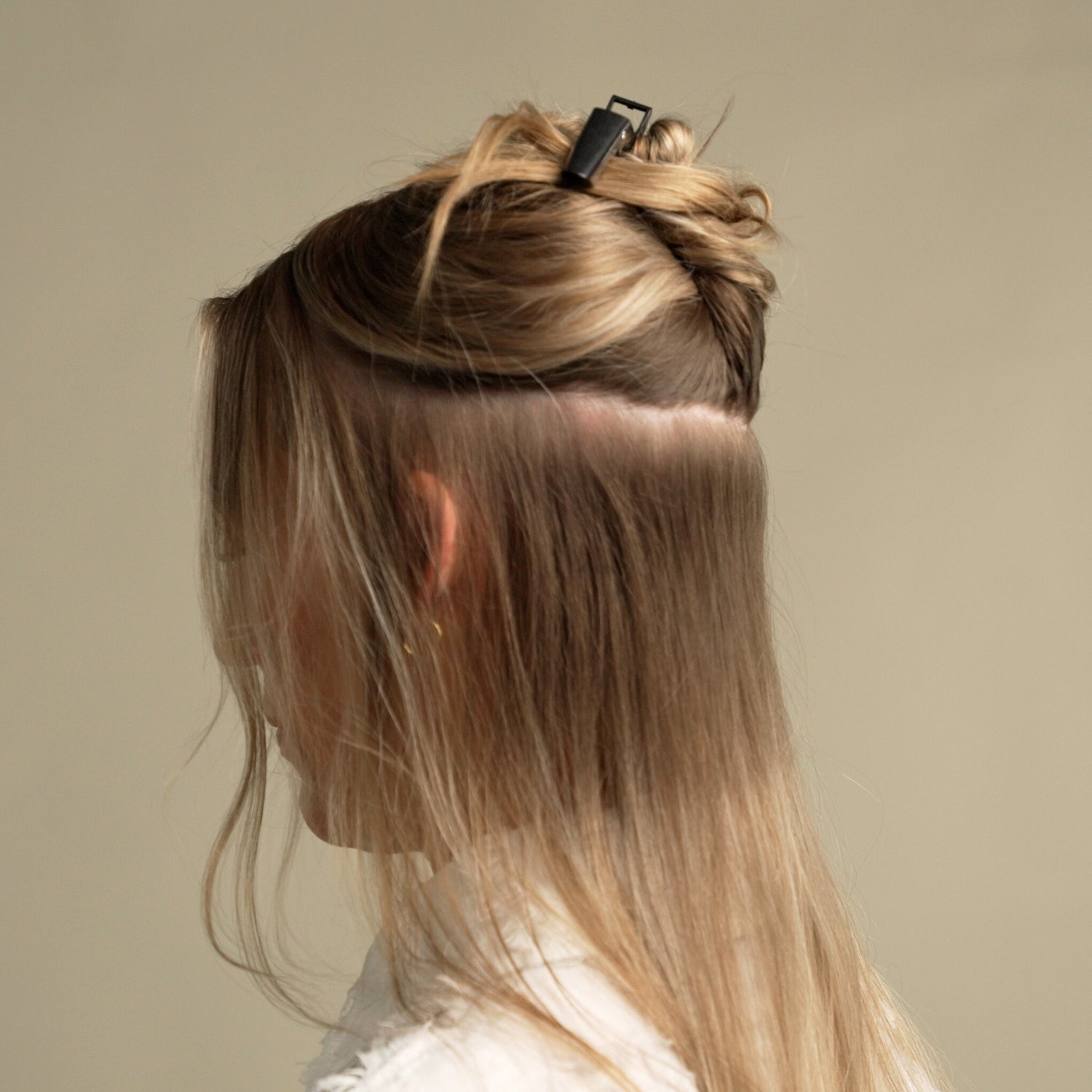 Før du clipser dine Halo extensions fast, er det en god idé at toupere dit hår let ved hårrødderne. Det er særligt en god idé, hvis du har glat eller fint hår – så har dine clips nemlig noget at sætte sig fast i.