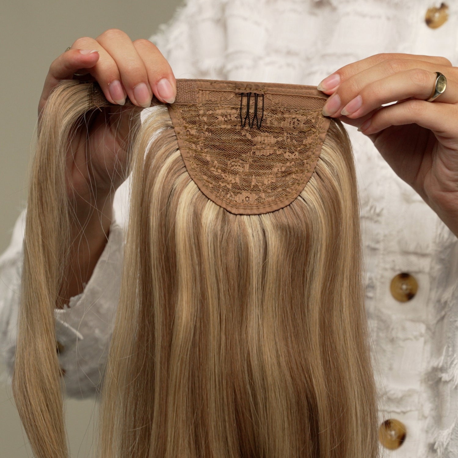 Sørg for, at velcro-stykket sidder stramt om din egen hestehale – du kan altid gøre det om, hvis det bliver for løst første gang, du prøver.