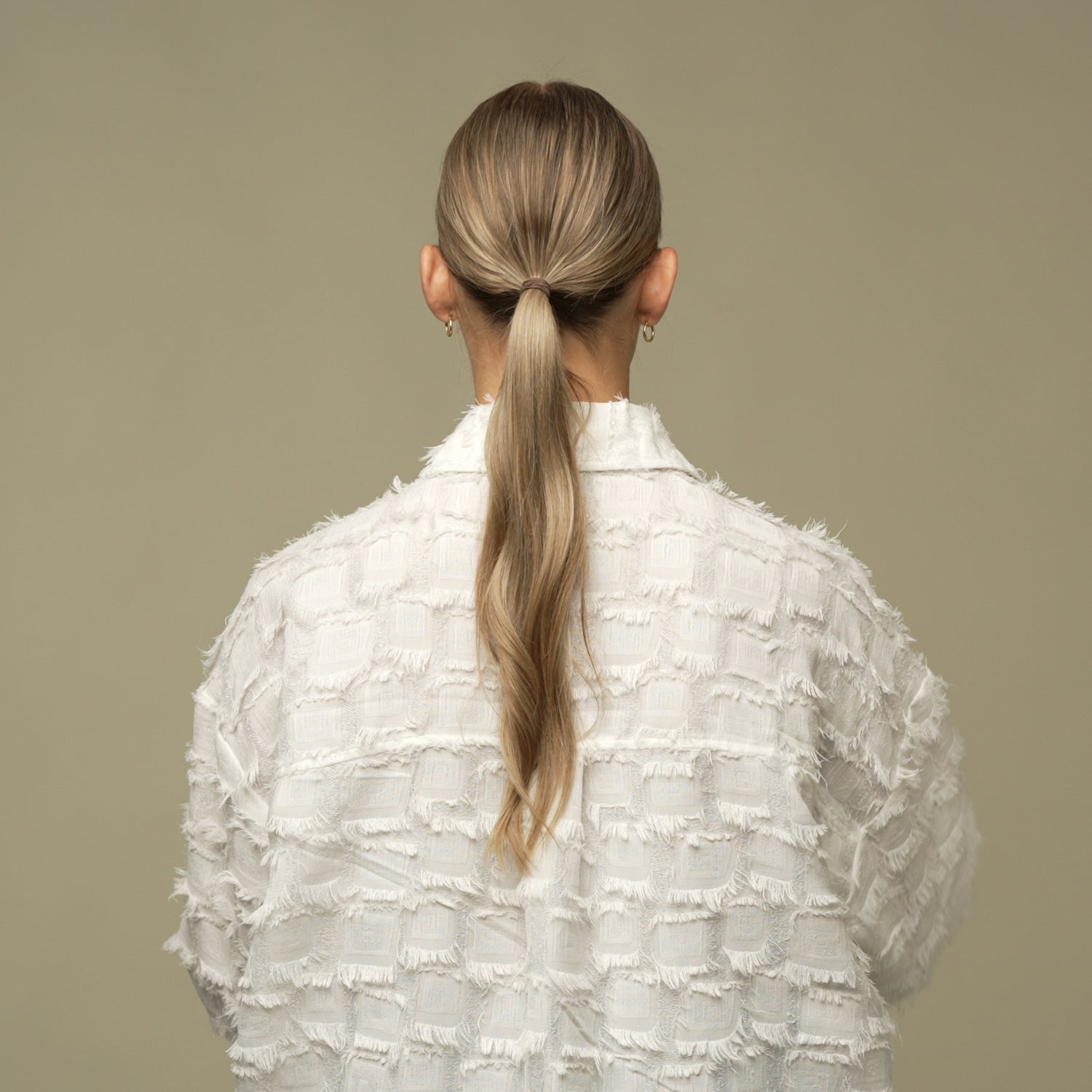 Du bestemmer selv, hvor højt eller lavt din hestehale skal sidde. Men hvis du har tyndt eller fint hår, anbefaler vi, du starter med en lav hestehale. Det trækker mindre i dit eget hår, så hestehalen sidder mere behageligt og sikkert.