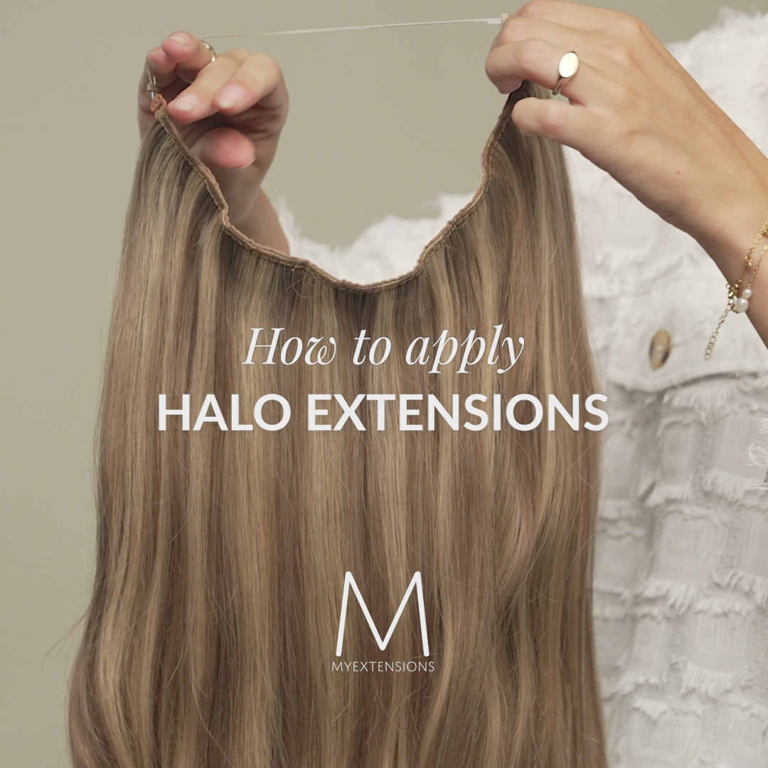 Halo extensions består af én lang bane hår, du sætter fast med en elastisk wire og clips, som en glorie rundt om dit hoved.